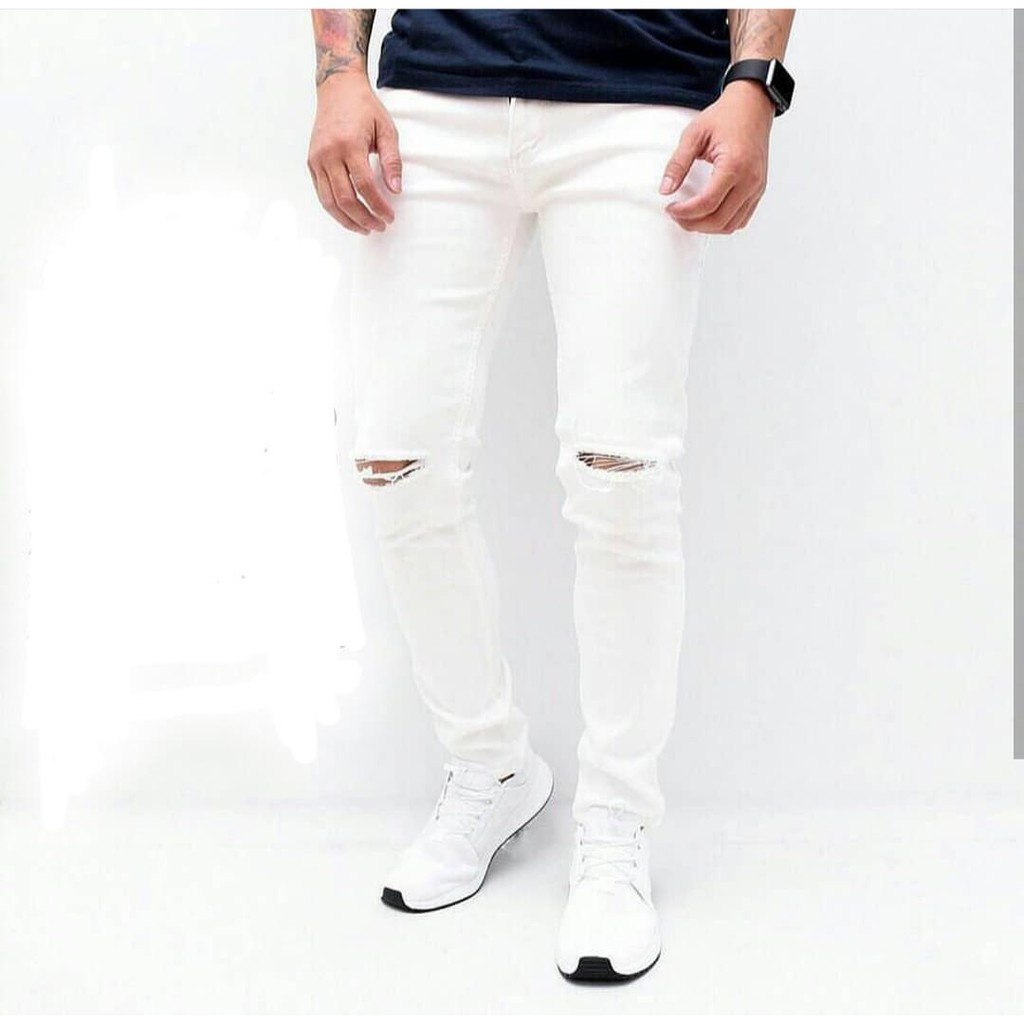 CELANA JEANS PRIA SKINNY PUTIH RIPPED Shopee Indonesia . Sumber Gambar : shopee.co.id